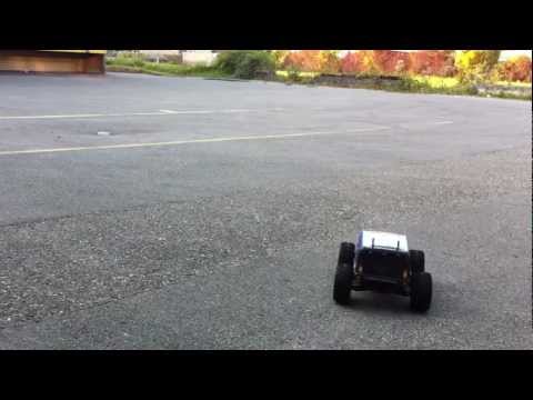 Модель управляется двухканальной аппаратурой куркового типа: Вперед, тормоз, назад - при помощи электронного регулятора хода влево вправо колеса поворачивает мощный сервомеханизм стандартного размера.
